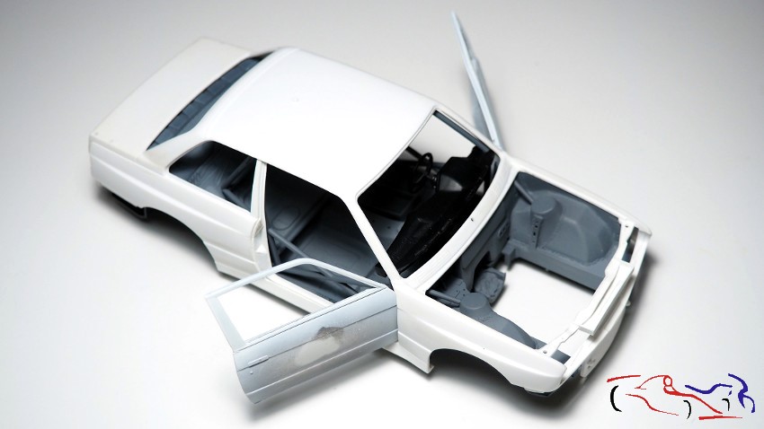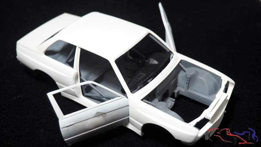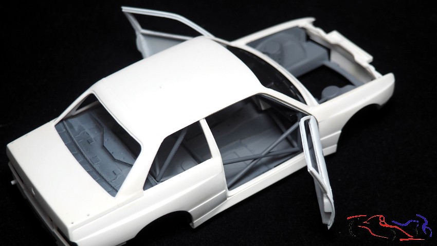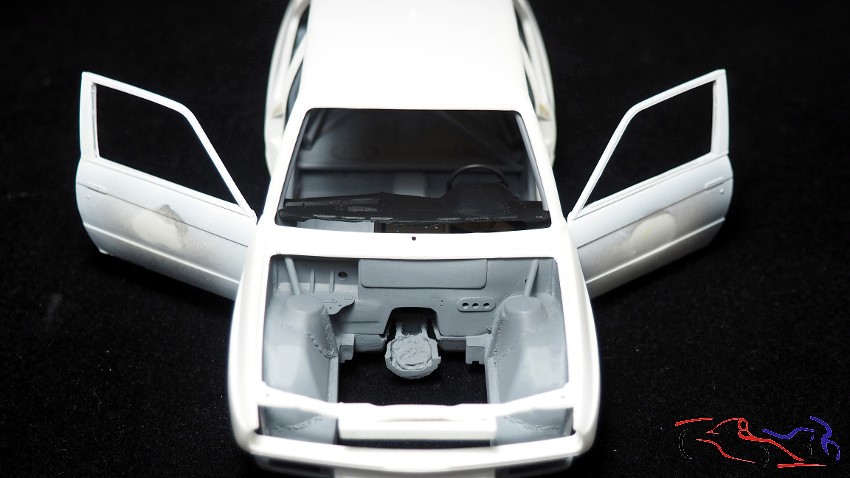 And if we assemble everything to check the fit, we have the complete body with the doors open: