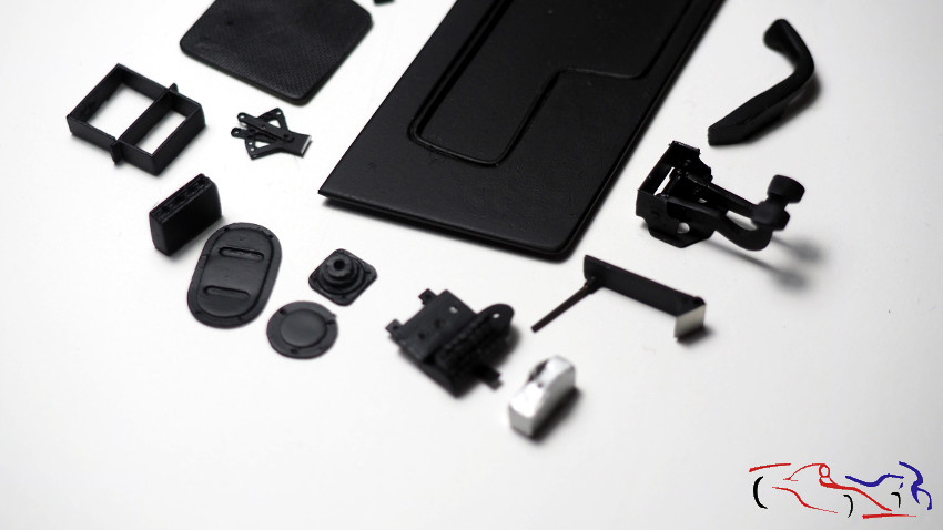 Finally, in this post, I’m printing and painting all the interior parts. I’d like to highlight the door trim pattern and the brake bias adjuster in the last photo, which gave me a lot of trouble, both making it and mounting it in the cockpit. But I’ll talk about that in the next post.