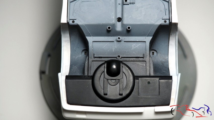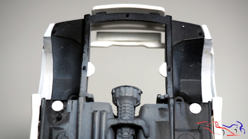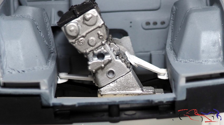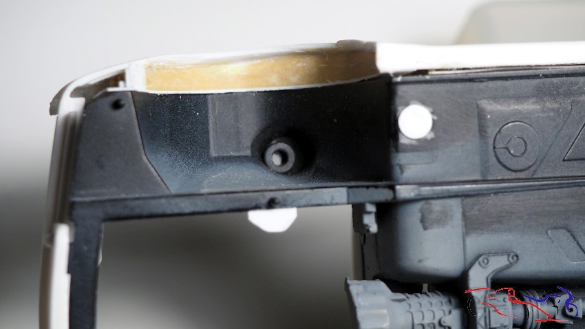 Y con ello, y muchas piececitas más, terminamos el salpicadero. Destacar las calcas de fibra y de los indicadores de los botones, así como los distintos tipos de interruptores, algunos pintados.