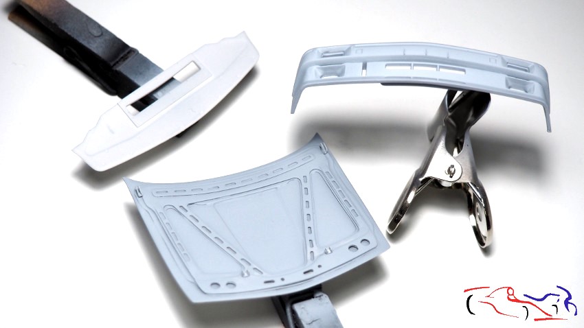 Y como estaba con el aerógrafo, también di imprimación a piezas de la carrocería: